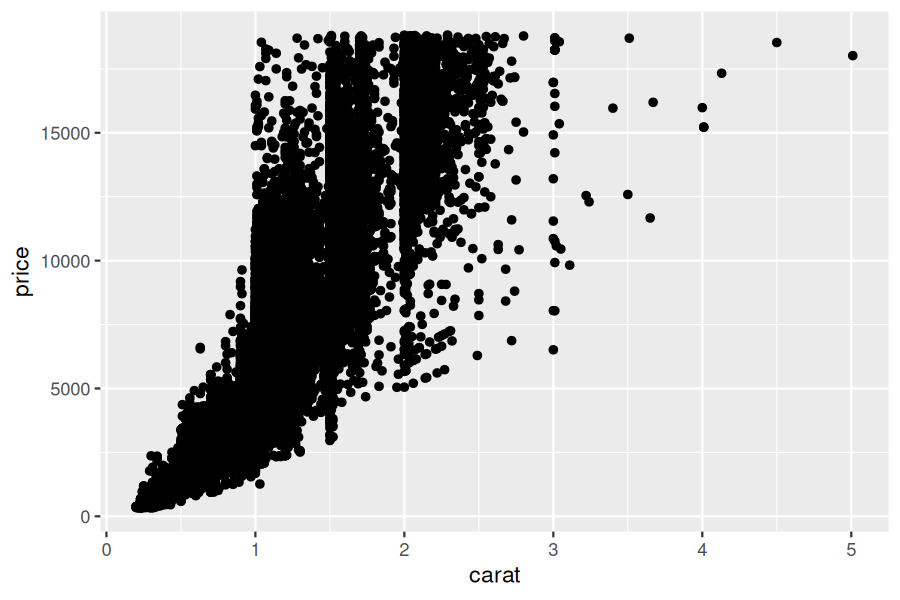 usingRCall# type `$` to enter R modeR>library(ggplot2)R>data(diamonds)R>ggplot(diamonds, aes(x=carat, y=price)) +geom_point()